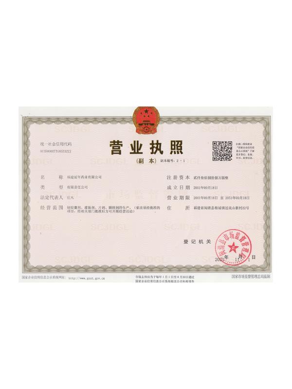 福建延年藥業(yè)有限公司位于福州市閩清縣城關,工廠坐落在風景秀美的梅城森林公園山腳下,公司前身是中國人民解放軍第9747工廠,創(chuàng)辦于1970年9月,隸屬南京軍區(qū)總后勤部,企業(yè)的地方名稱為福建閩清制藥廠。1998年6月為貫徹中央關于軍隊不再從事經(jīng)商活動的決議,企業(yè)軍轉地改制移交地方,2001年9月企業(yè)改制,更名為福建延年藥業(yè)有限公司。